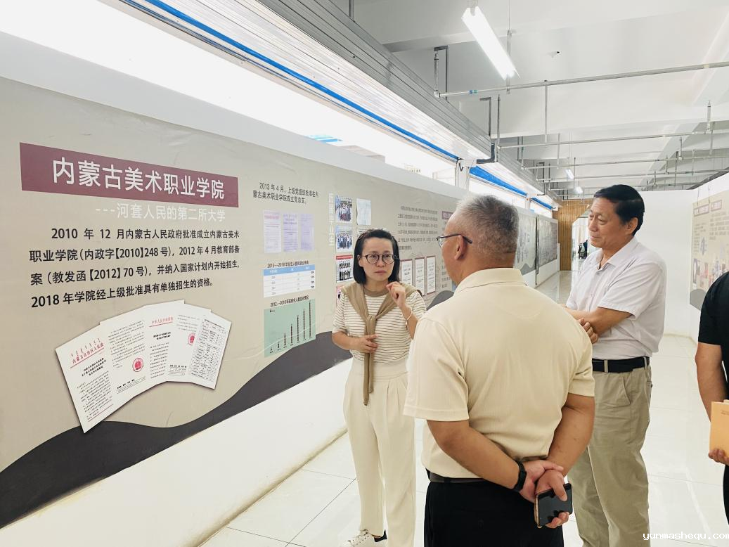 孟保和理事长向考察组一行详细介绍我院“三元模式”“四制一体化”办学特色下的教学模式和学生学习方式,并陪同参观了学院各专业工作室。