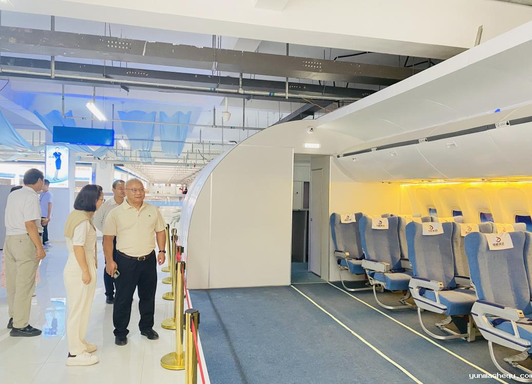 图为张海成书记一行参观我院空乘与高铁学院实训基地——仿真机舱