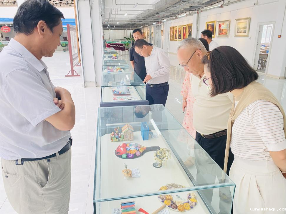 图为张海成书记一行参观幼儿师范学院学生手工作品