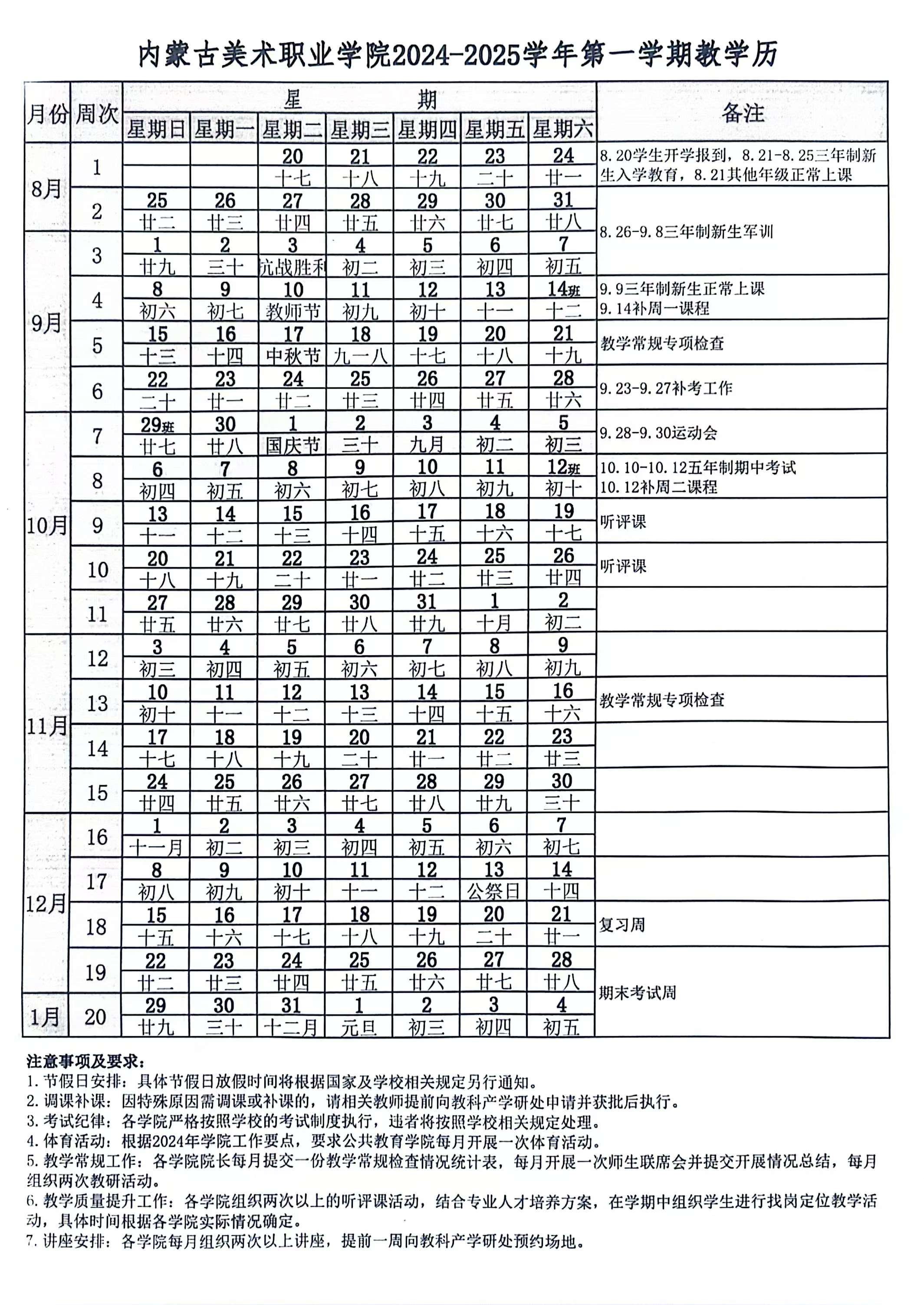 betway精装版苹果2024-2025学年第一学期教学历