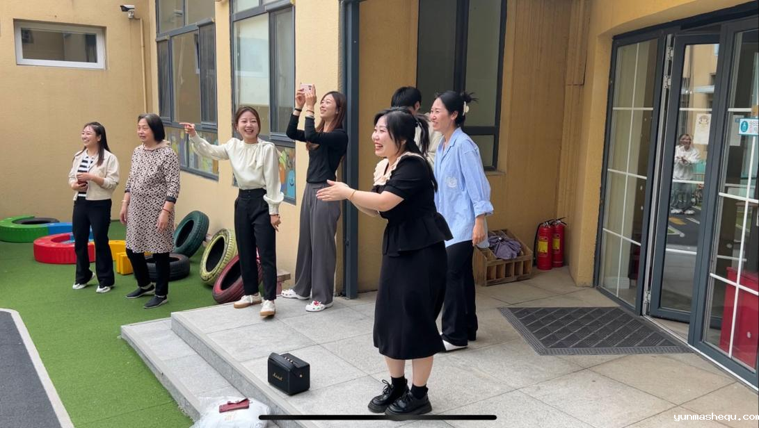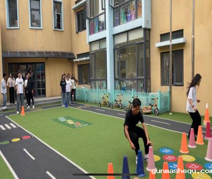我院学生体验实战组织教育教学活动,并与幼儿园体能老师、教学主管、国际班外交老师互动沟通。