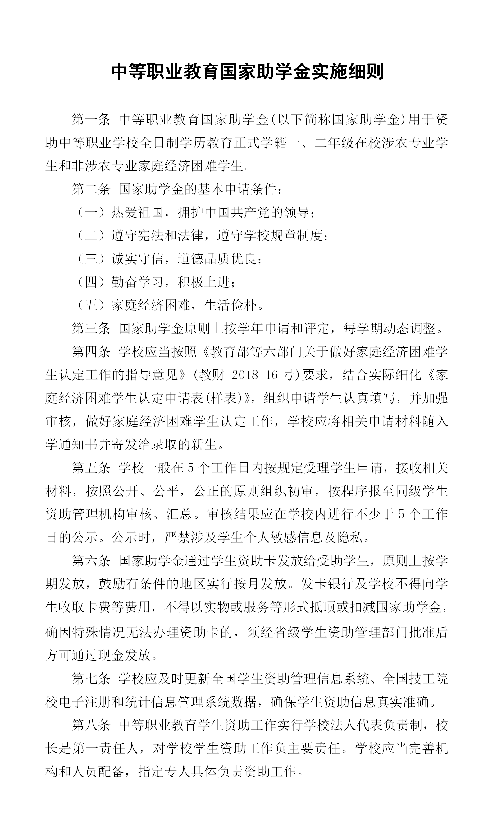 中等betway精装版下载国家助学金实施细则