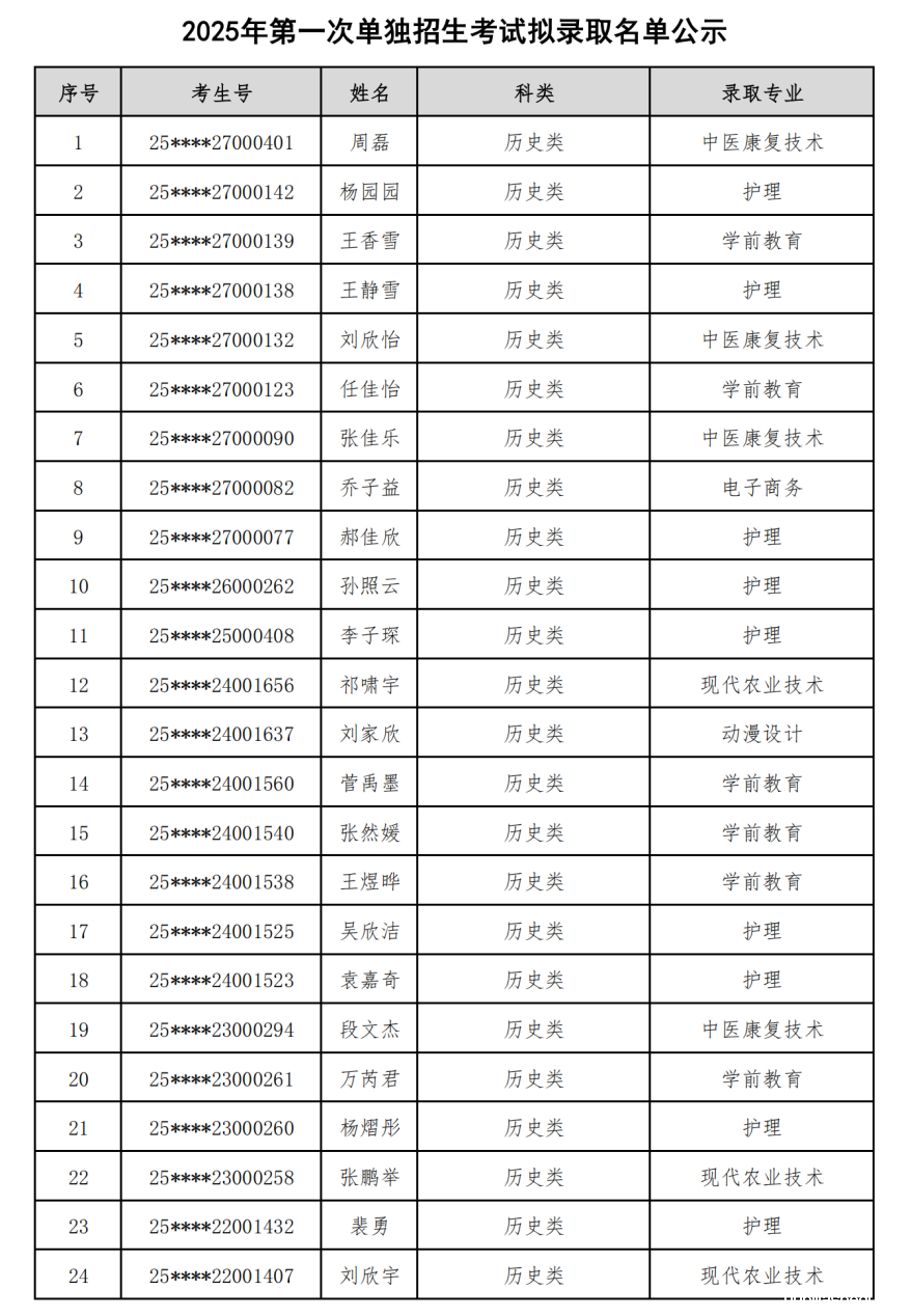 betway精装版苹果2025年第一次单独招生拟录取名单公示