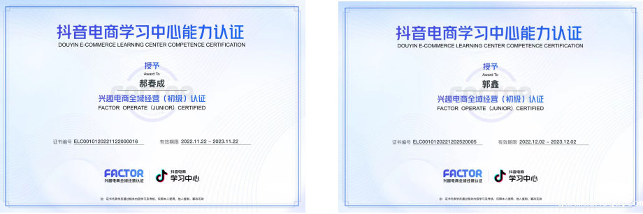 计算机电子商务学院,积极带领学生,在主流电子商务平台考取相关专业认证,电子商务运营工作室,符合考核条件的学生,百分之五十以上考取抖音平台《兴趣电商全域经营初级认证》,让学生在就业时多一份筹码。