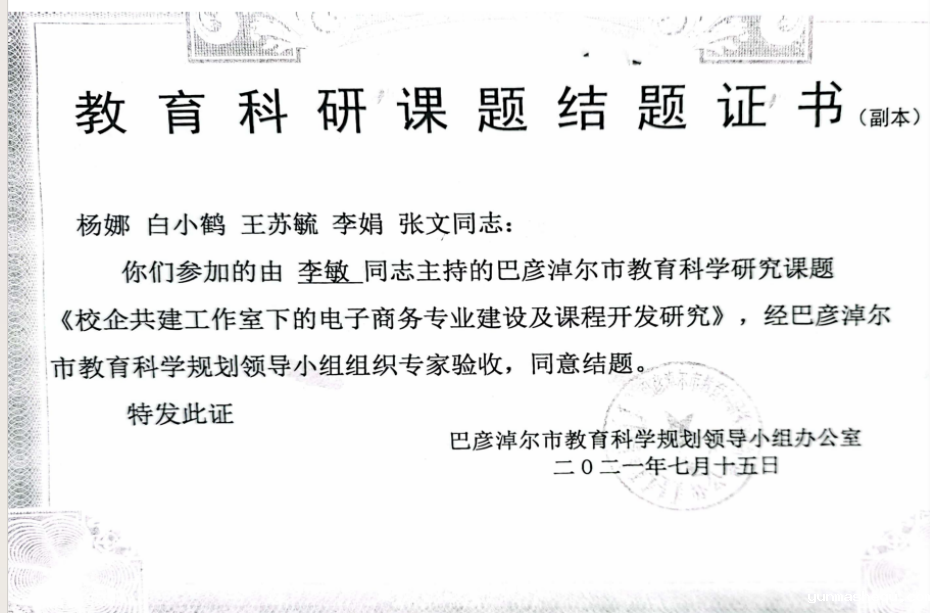 市级《校企共建工作室下的电子商务专业建设及课题开发研究》结题