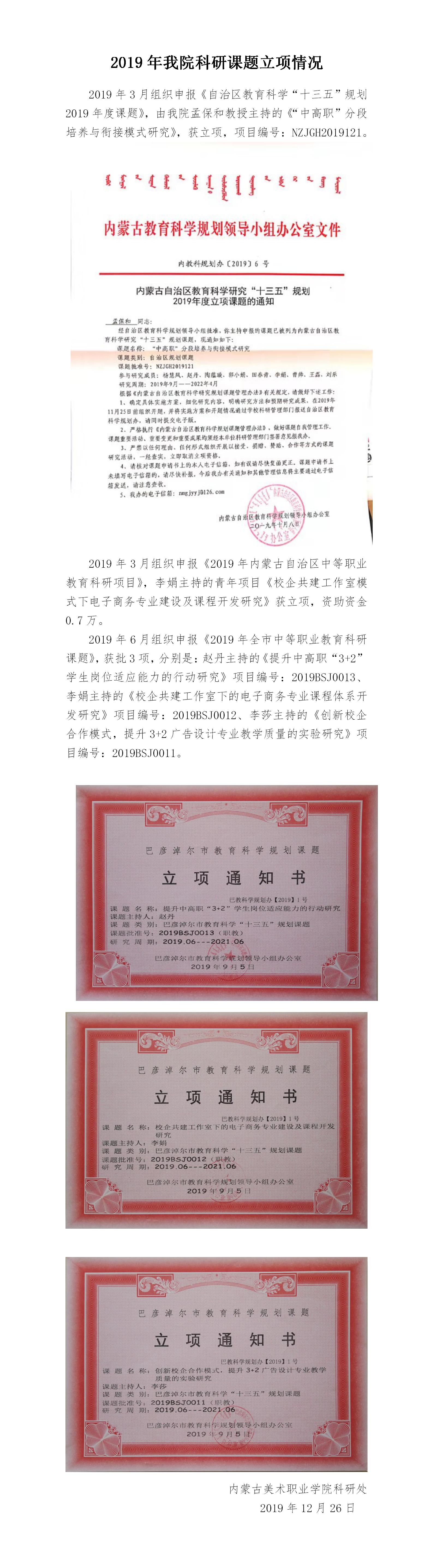 2019年我院科研课题立项情况